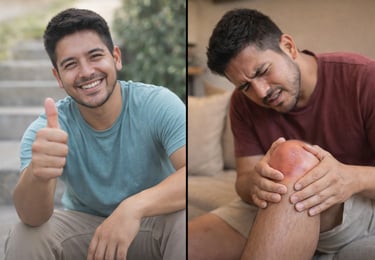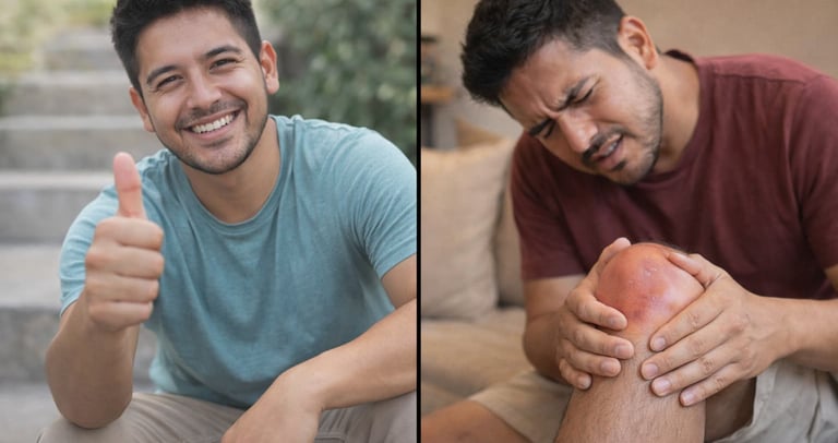 "Hace exactamente 90 días, la foto de la derecha era mi vida: atrapado en el sofá, con la rodilla ardiendo y sintiéndome un anciano a mi edad. Hoy, publico esto en la comunidad para dar testimonio de que el Método Ancestral funciona.