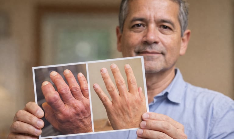 Mira mis manos hoy. La inflamación desapareció, recuperé mi movilidad y llevo más de un año sin una sola crisis de gota. Guardo esta foto para recordarme que el alivio real es posible cuando sanas la raíz. No esperes a que el daño sea permanente."