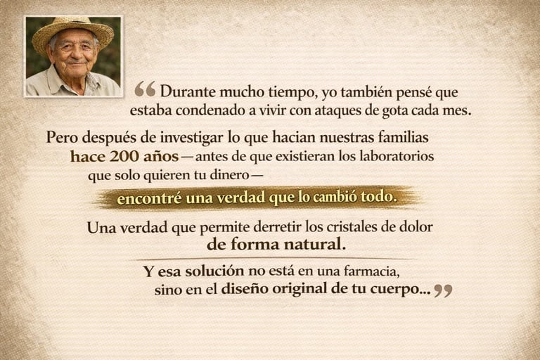 Hace más de dos siglos, en nuestros pueblos no existían las grandes farmacias, pero tampoco existía la invalidez por gota. Nuestros antepasados poseían el "Código de Drenaje": un conocimiento sagrado de bio-reparadores que "limpian las compuertas" de tus riñones de forma inmediata.